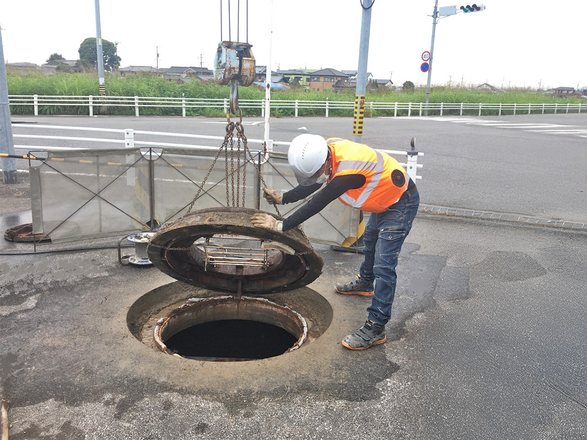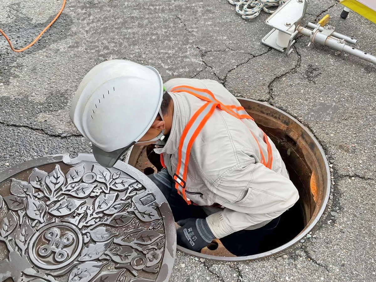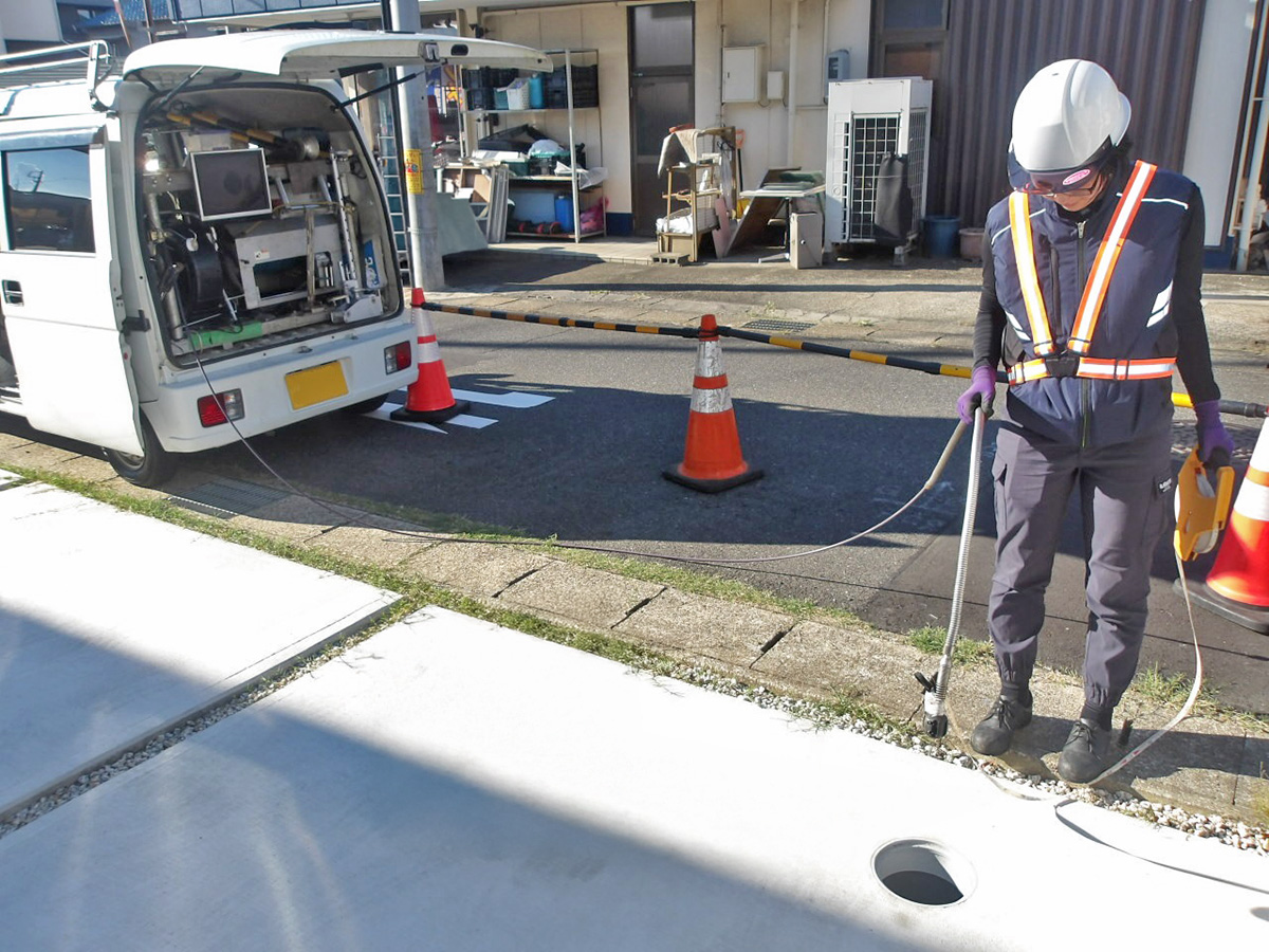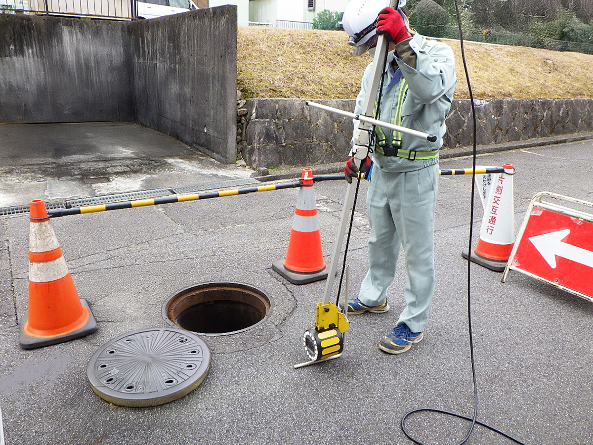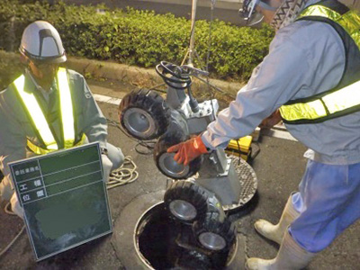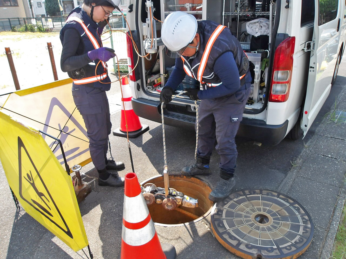 ナカケンでは、現場状況に応じ様々な調査を行います。また、大規模災害時には(公社)日本下水道管路管理業協会協会員として災害復旧のために必要な下水道の被災状況の調査活動を行っています。