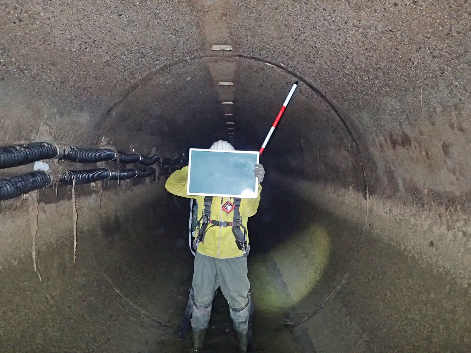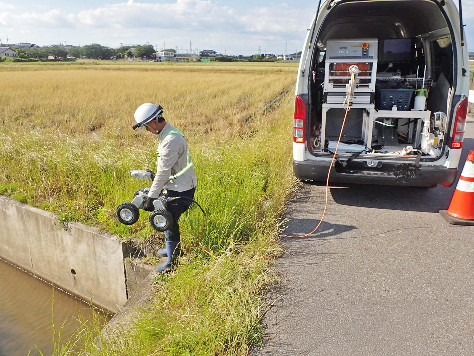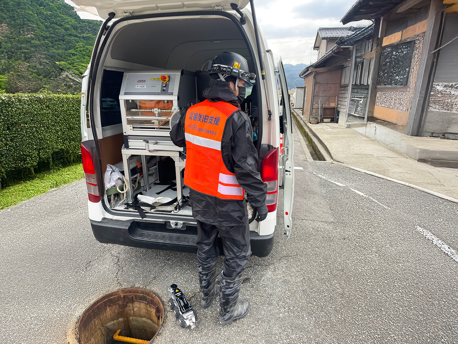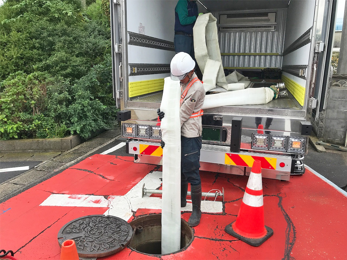 ナカケンでは、現場状況に応じ様々な調査を行います。また、大規模災害時には(公社)日本下水道管路管理業協会協会員として災害復旧のために必要な下水道の被災状況の調査活動を行っています。